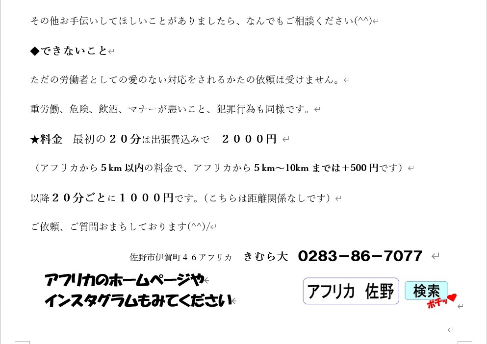 その他お手伝いしてほしいことがありましたら、なんでもご相談ください(^^)